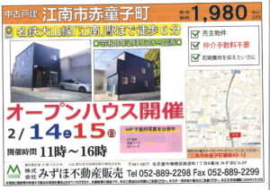 来週末、江南市赤童子の新規戸建て物件のオープンハウスを開催致します。